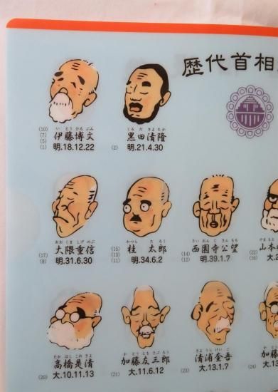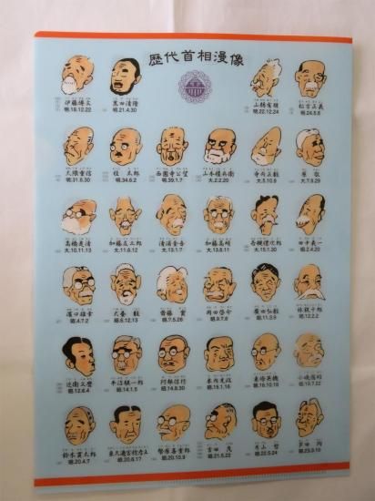 歴代首相漫像クリアファイル(青)(高市首相入り)
