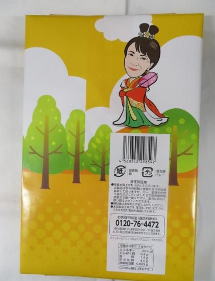 原材料名:小麦粉(国内製造)、マーガリン、砂糖、鶏卵、乳等を主要原料とする食品、食塩/膨張剤、香料、乳化剤、酸化防止剤(V.E)、着色料(赤102、赤106、青1、黄4,カロテ・ン)、(一部に小麦・卵・乳成分・大豆を含む)